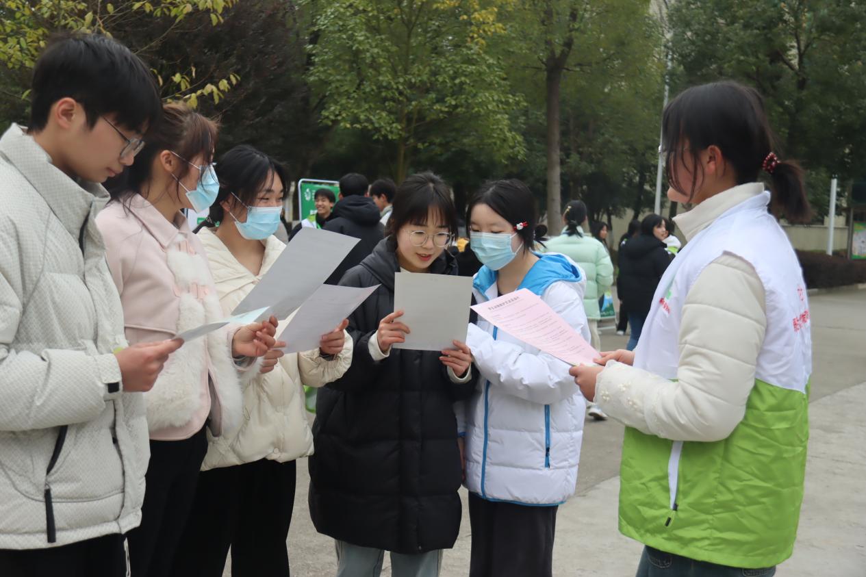 志愿者向同学们宣讲保护野生动植物的目的和意义