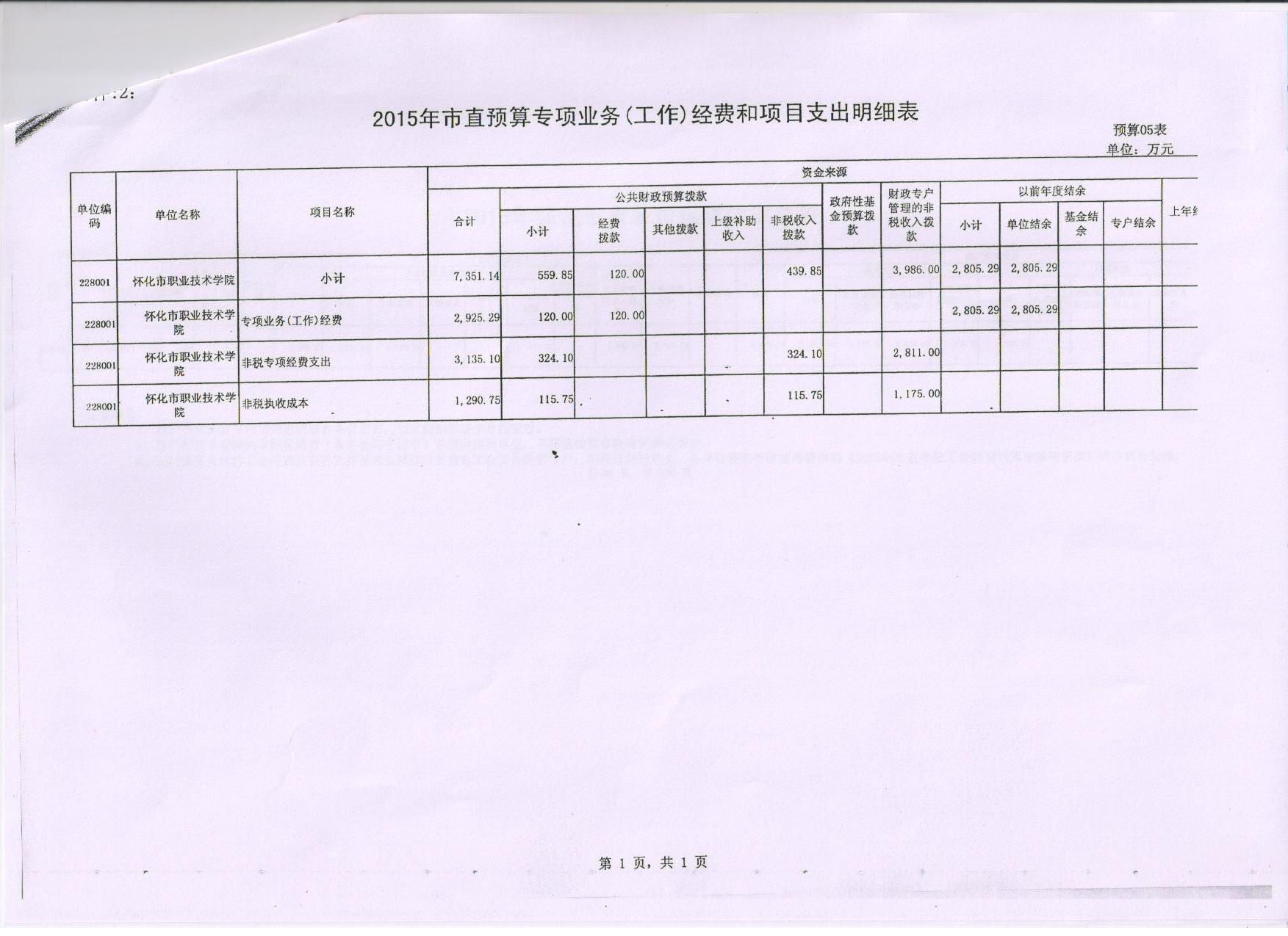 怀化职业技术学院2015年部门预算说明