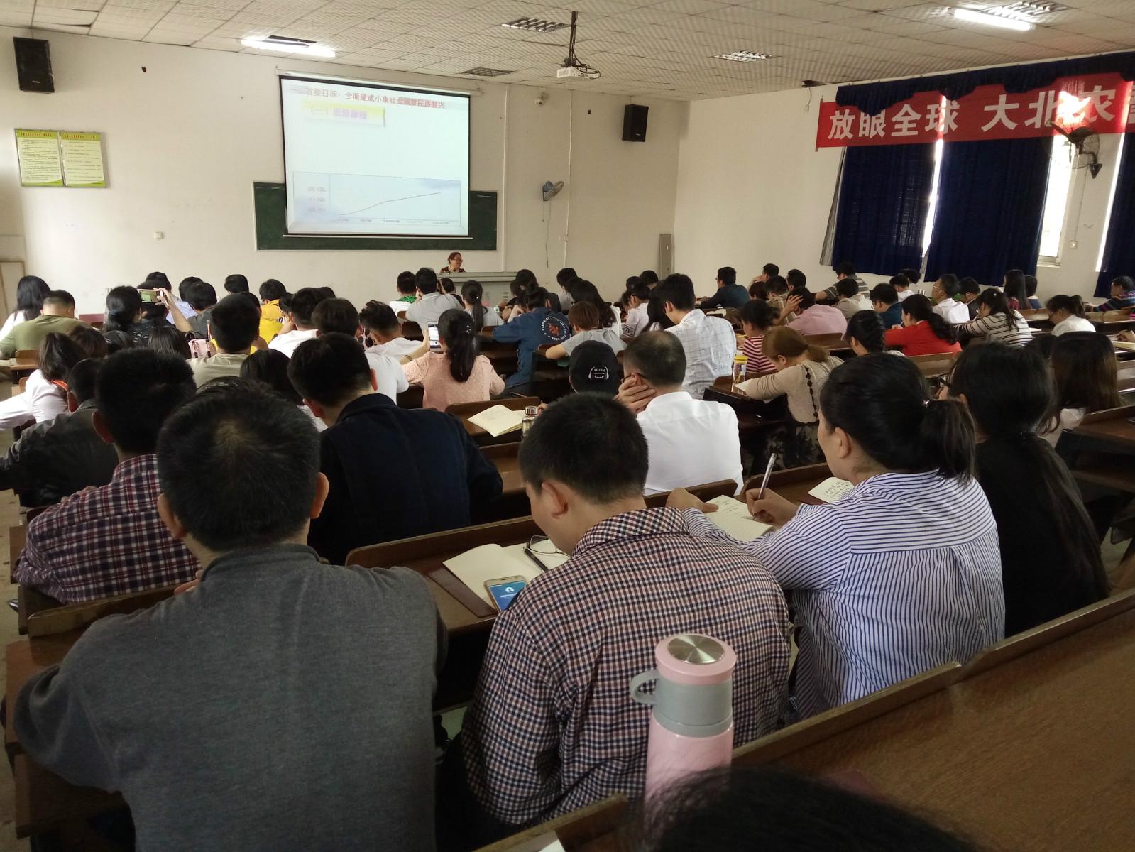 5月5日下午,我院商贸管理系党支部书记刘新梅在教学楼T1教室给学院七大支部的党员同志们带来了一堂生动的党课——“引领中华民族伟大复兴的战略布局—学习领会‘四个全面’科学内涵”。